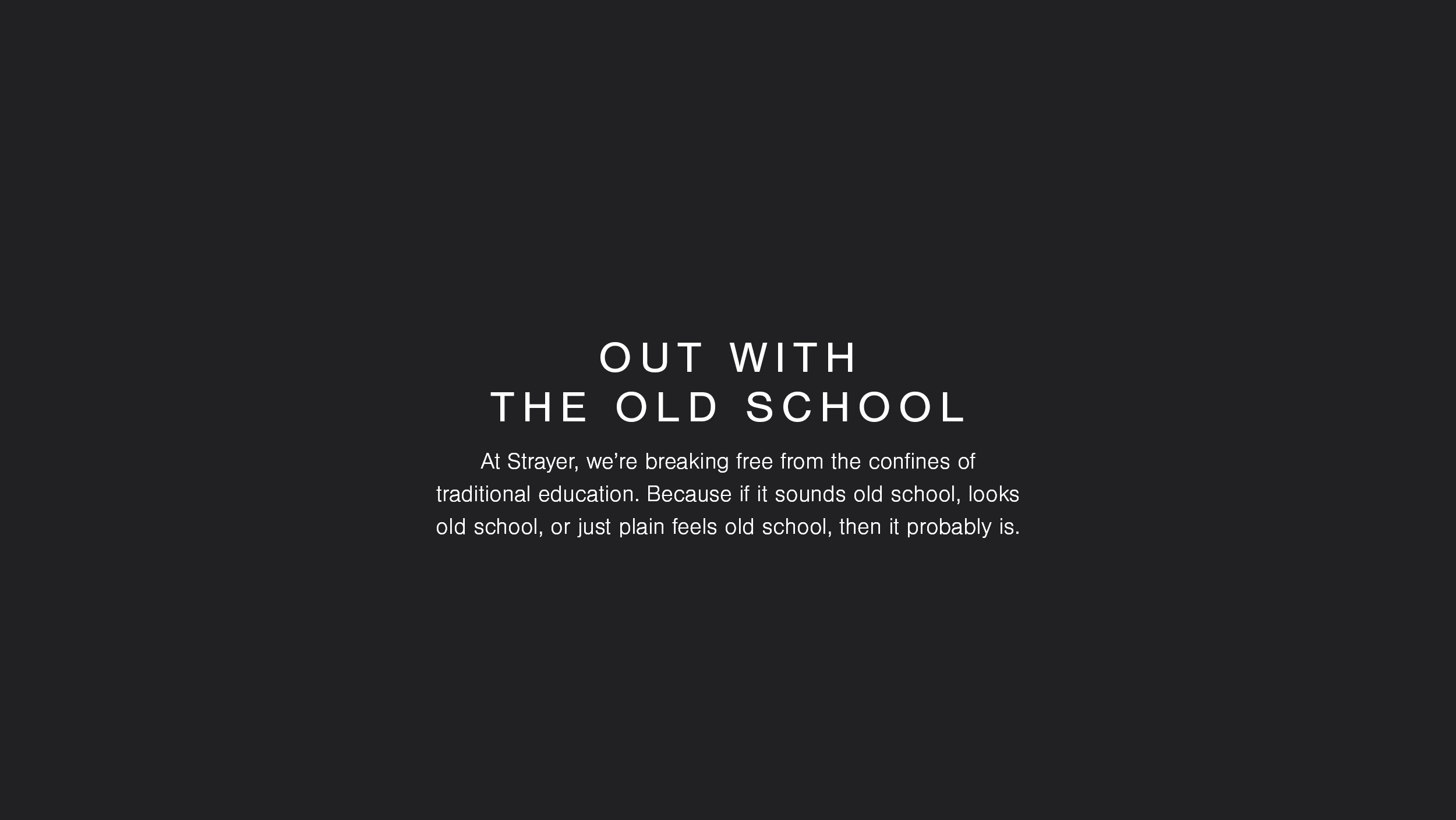 As a leader in online education, Strayer University offered flexible and remote learning back before it was cool. Our campaign—Out with the Old School—champions innovative and affordable education built around you.